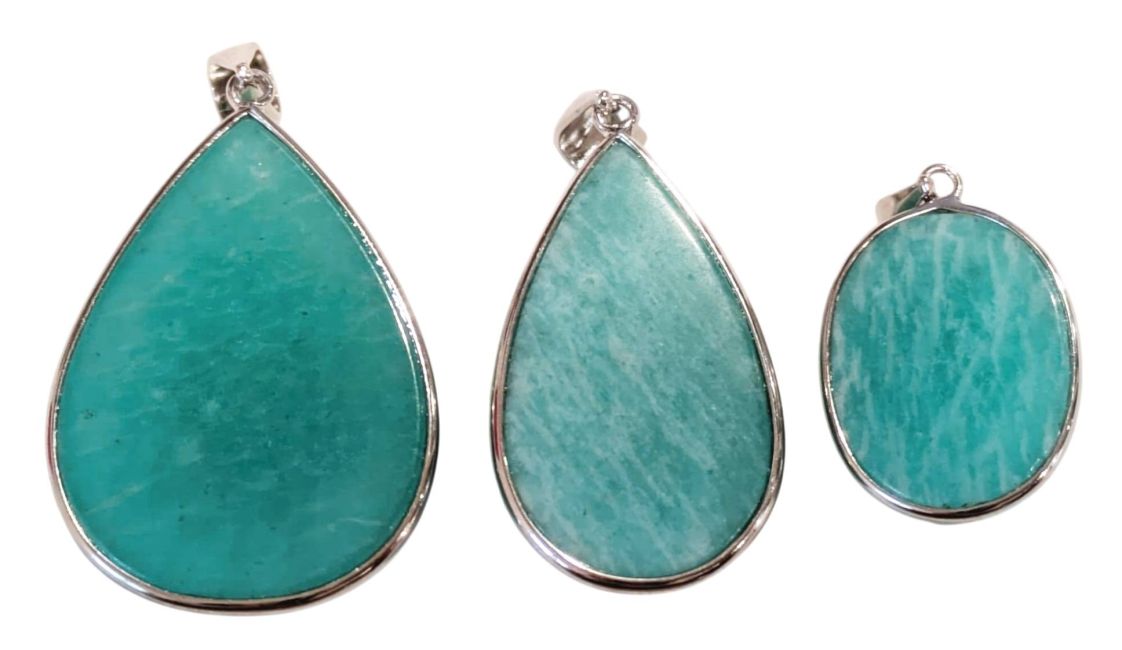 925er Sterlingsilber Amazonit AA+ Anhänger, 3-teilig, 16,77 g