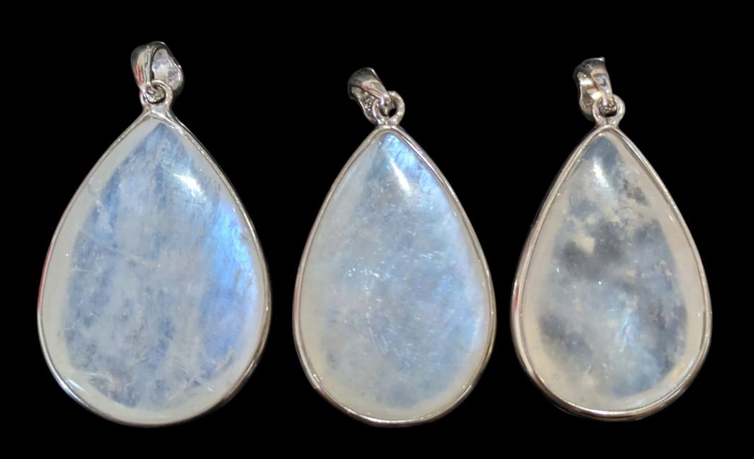 Anhänger aus 925er Sterlingsilber mit weißem AAA-Mondstein, 3-teilig, 10,92 g