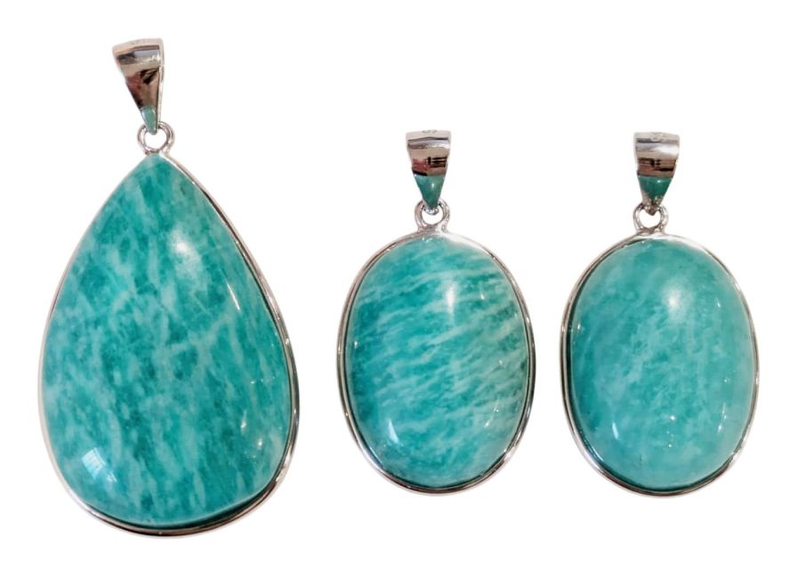 Anhänger aus 925er Sterlingsilber mit Amazonit (AA+), 3-teilig, 14,32 g