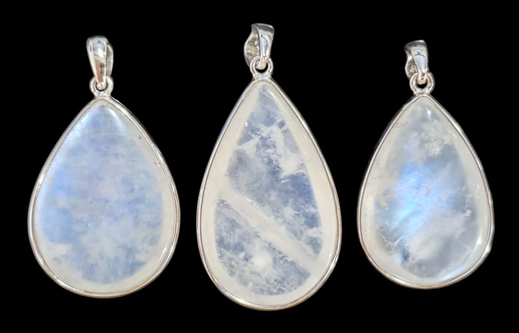 Anhänger aus 925er Sterlingsilber mit weißem AAA-Mondstein, 3-teilig, 10,52 g
