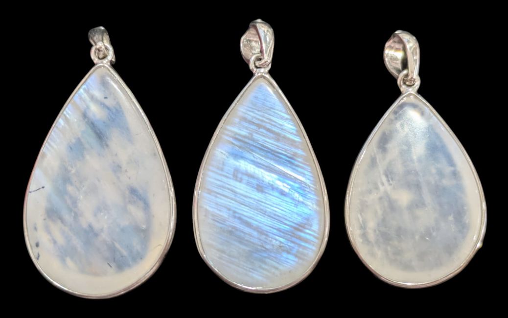 Anhänger aus 925er Sterlingsilber mit weißem AAA-Mondstein, 3-teilig, 10,63 g