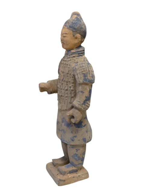 Antike bunte Terrakotta-Kriegerstatue, 26 cm