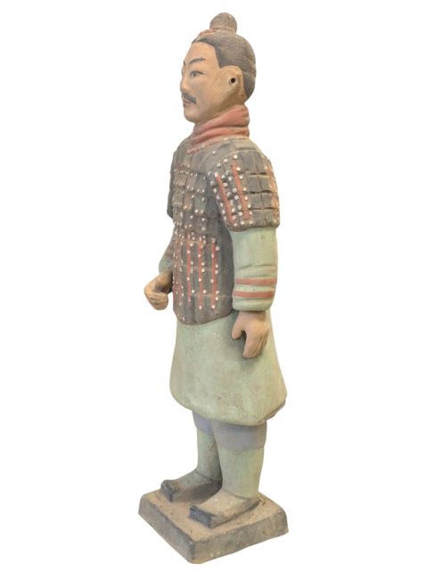Antike bunte Terrakotta-Kriegerstatue, 35 cm