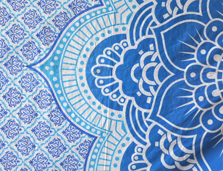 Blauer und hellblauer Lotoswandbehang