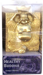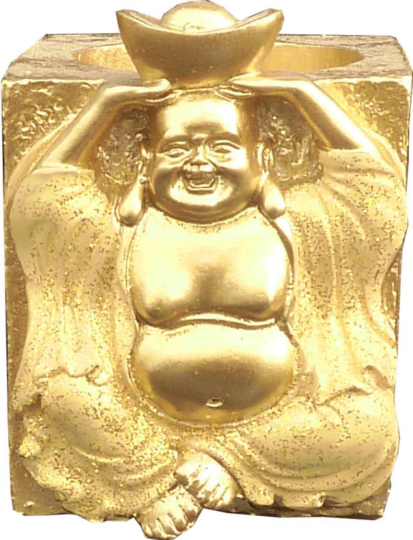 Buddha-Gesundheitskerzenhalter aus Kunstharz goldfarben 7 cm