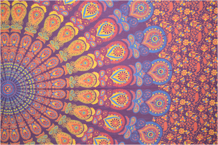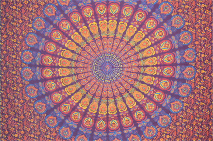 Burgunder-Mandala-Wandbehang hellblau orange u. Gelb