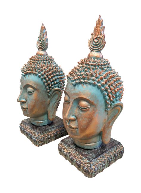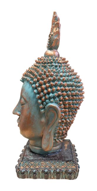 Dekorativer Buddha-Kopf aus Kunstharz in Bronzeoptik