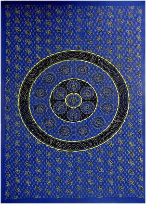 Tenture Imprimée Fleurs Fleurs Coton 135X215 cm Bleu Fait en Inde