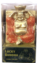Glücksbuddha-Kerzenhalter aus Kunstharz orange 7 cm