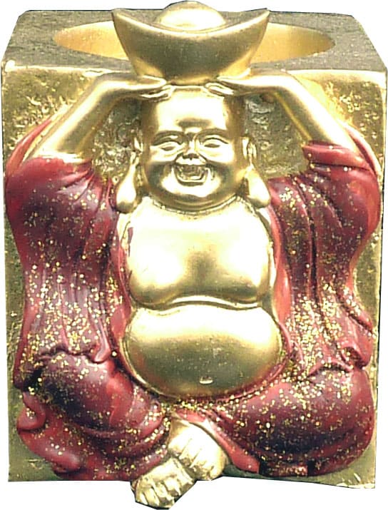 Happy Buddha Kerzenhalter aus Kunstharz Bordeaux 7cm