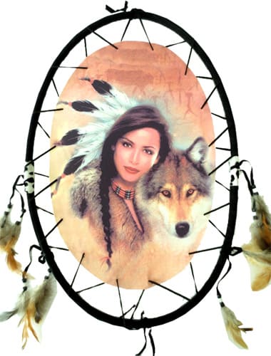 Indischer ovaler Traumfänger & Wolf 55cm