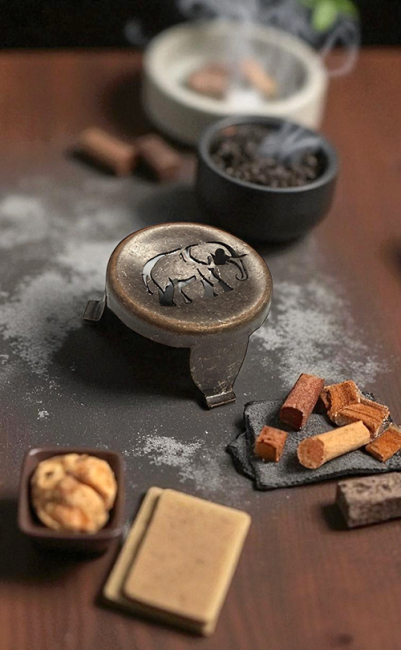 Dieser Metallhalter ist speziell für die Aufbewahrung von brennender Kohle konzipiert, die bei Räucher-, Räucher- oder Aromatherapie-Ritualen verwendet wird. Sein durchbrochenes Design stellt einen majestätischen Elefanten dar, ein Symbol der Weisheit und des Schutzes.