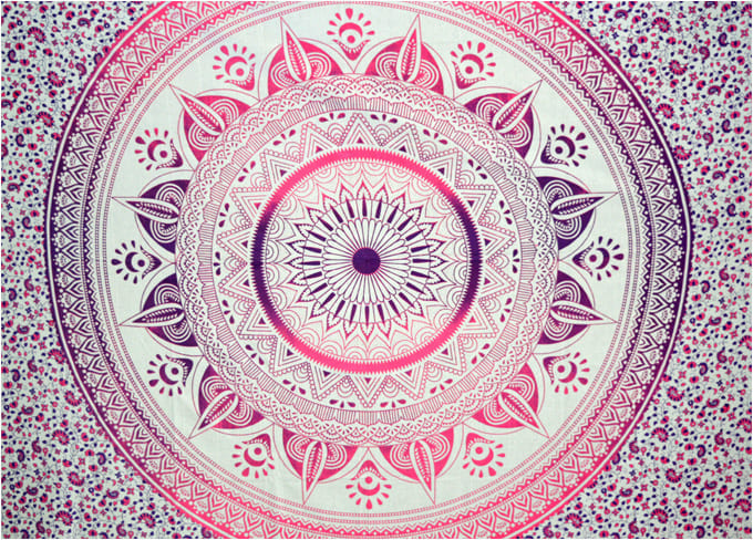 Madala Wandbehang in Weiß Malve Fuchsia und Lila