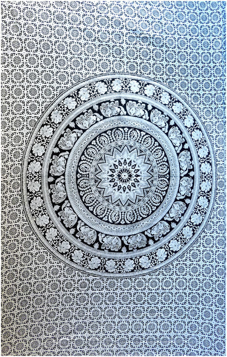 Mandala Elefant Wandbehang schwarz & weiß