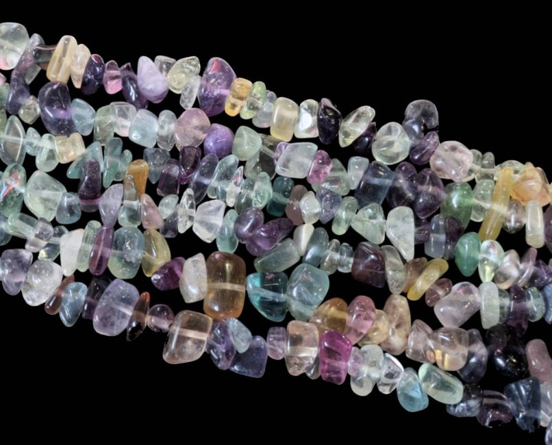 Mehrfarbige AA-Fluoritchips, 3–8 mm, an 80 cm Draht