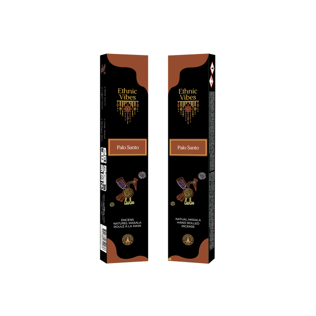 Entdecken Sie Fragrances & Sens Ethnic Vibes Palo Santo Masala Räucherstäbchen – ein holziger und einhüllender Duft, inspiriert von heiligem Holz. Sein warmer, süßer und wohltuender Duft schafft eine beruhigende Atmosphäre, ideal zum Entspannen, Meditieren und für das tägliche Wohlbefinden.