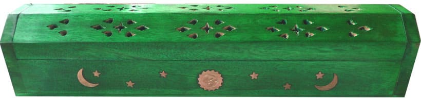 Räucherstäbchenhalterhütte aus hellgrünem Holz Mond & Sonne 30cm