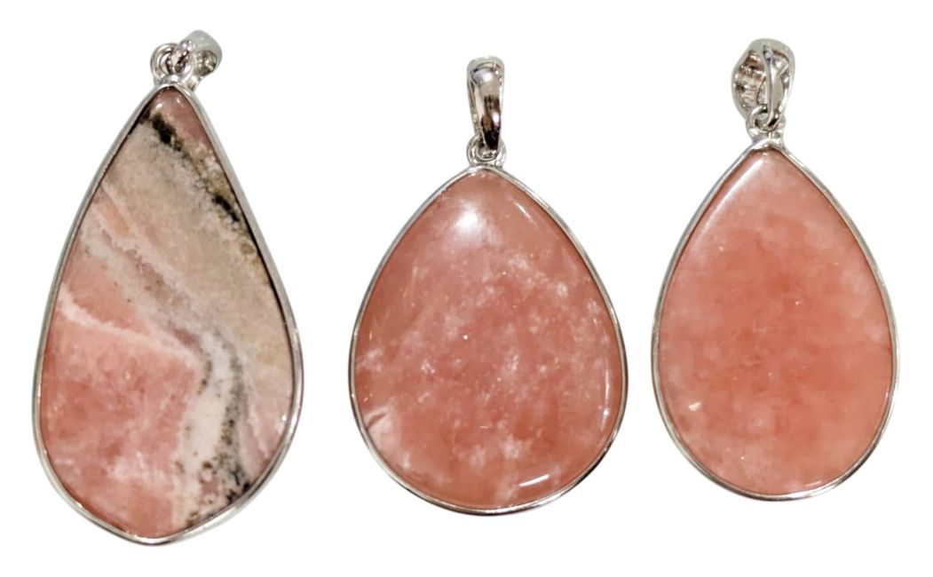 Rhodochrosit-Anhänger aus 925er Sterlingsilber, argentinische Qualität AA+, 3-teilig, 12,92 g