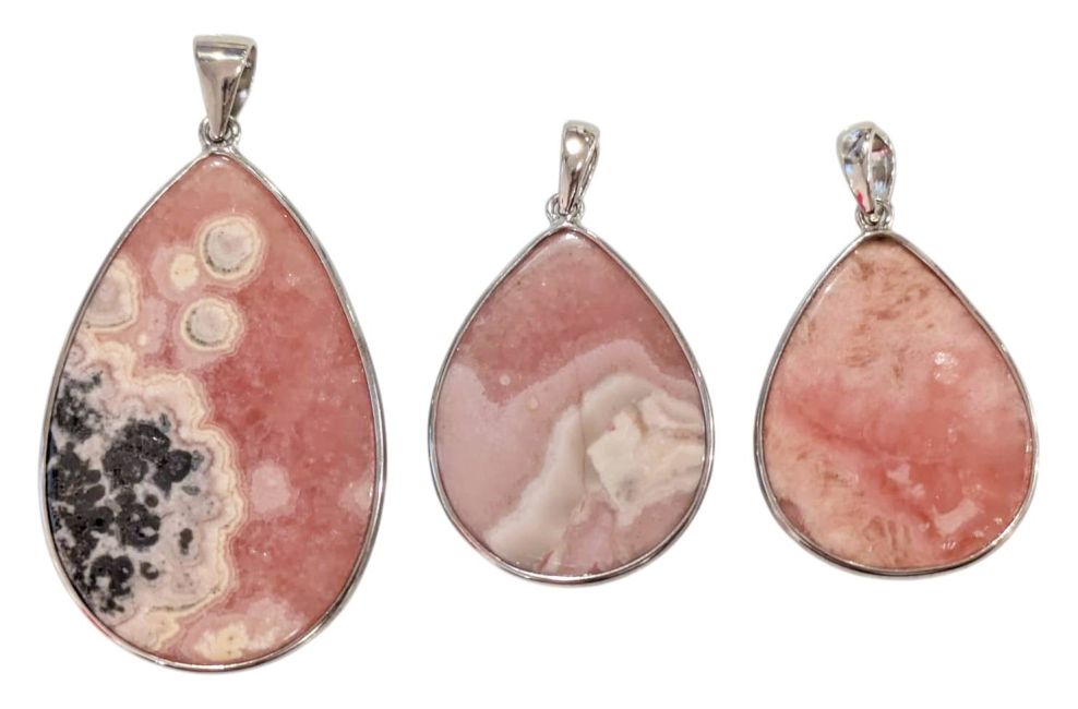 Rhodochrosit-Anhänger aus 925er Sterlingsilber, argentinische Qualität AA+, 3-teilig, 13,68 g