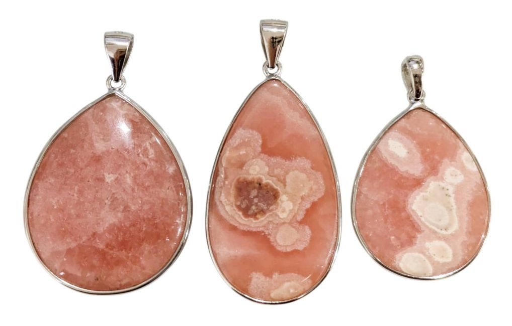 Rhodochrosit-Anhänger aus 925er Sterlingsilber, argentinische Qualität AA+, 3-teilig, 14,8 g