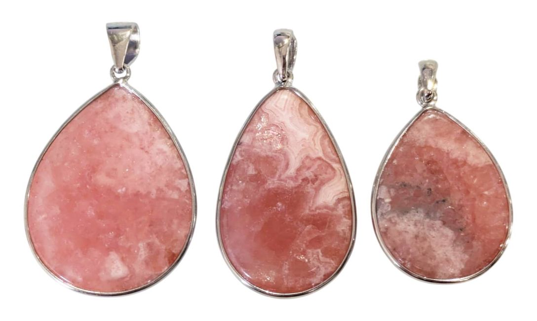 Rhodochrosit-Anhänger aus 925er Sterlingsilber, argentinische Qualität AA+, 3-teilig, 12,92 g