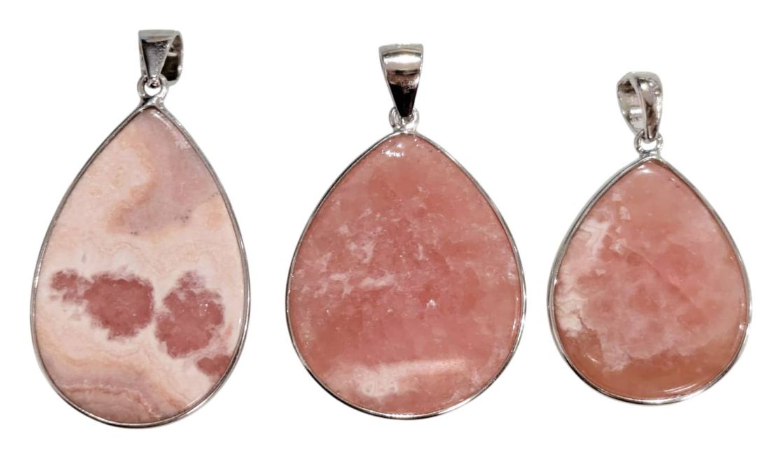 Rhodochrosit-Anhänger aus 925er Sterlingsilber, argentinische Qualität AA+, 3-teilig, 13,47 g