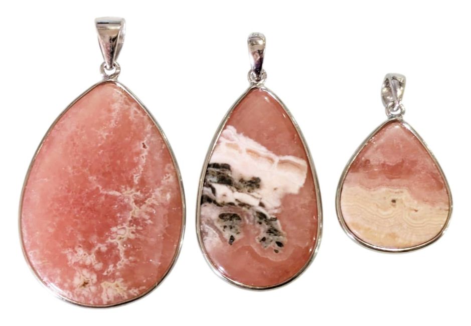 Rhodochrosit-Anhänger aus 925er Sterlingsilber, argentinische Qualität AA+, 3-teilig, 13,52 g