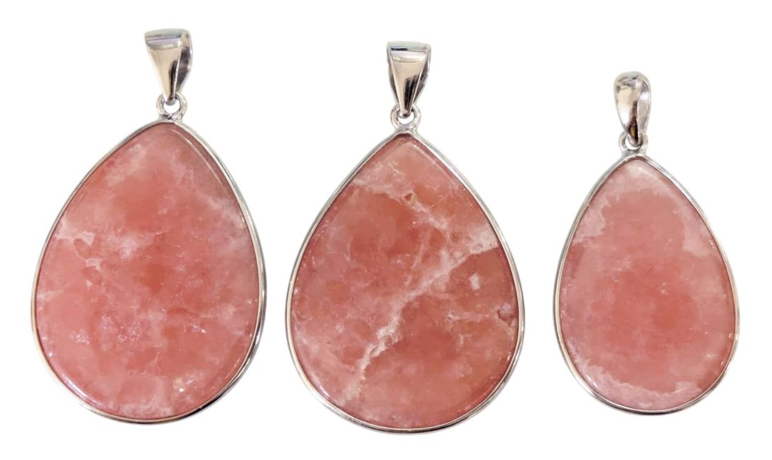 Rhodochrosit-Anhänger aus 925er Sterlingsilber, argentinische Qualität AA+, 3-teilig, 13,65 g
