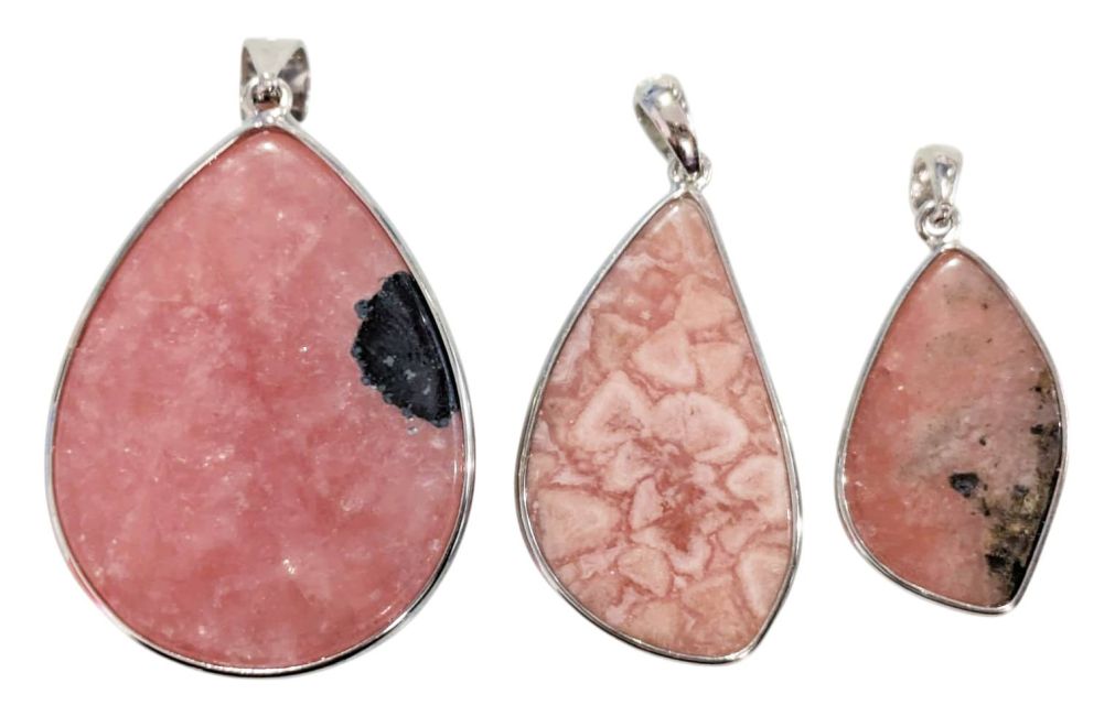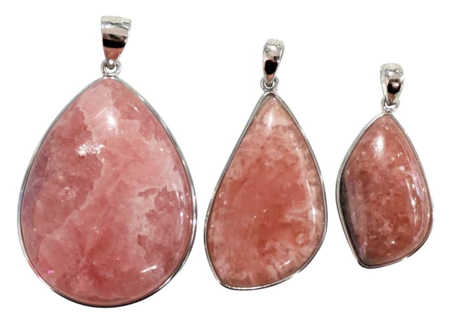 Rhodochrosit-Anhänger aus 925er Sterlingsilber, argentinische Qualität AA+, 3-teilig, 14,17 g
