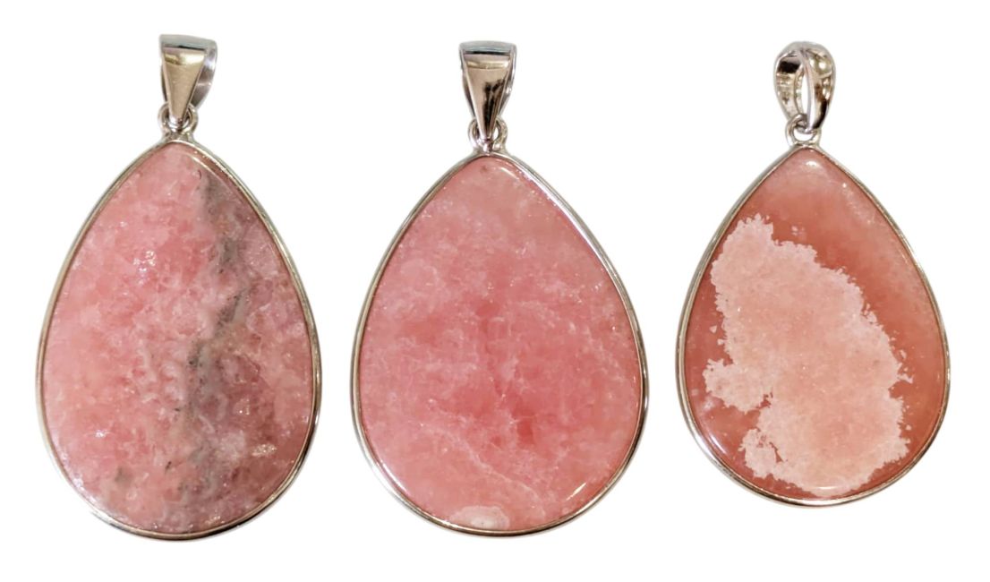 Rhodochrosit-Anhänger aus 925er Sterlingsilber, argentinische Qualität AA+, 3-teilig, 14,28 g