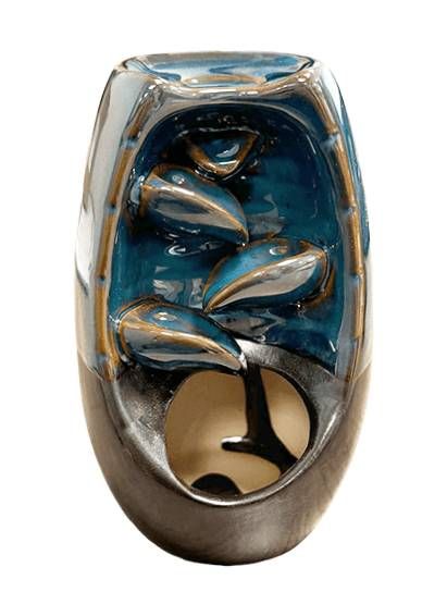 Rostbrauner Keramik-Rückfluss-Räucherstäbchenhalter Blätterkaskade 20 cm