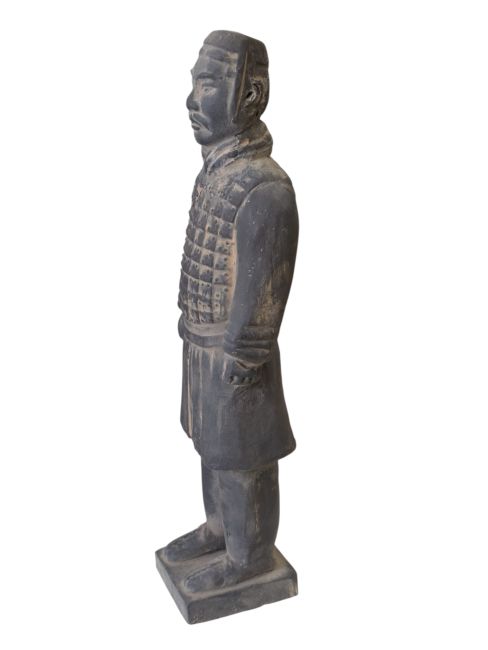 Schwarze Terrakotta-Statue eines Ritters, 26 cm