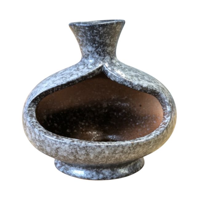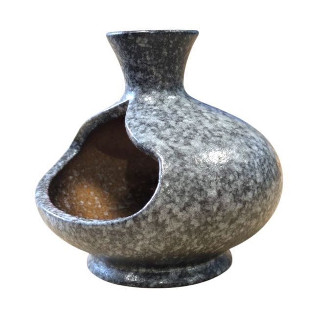 Die schwarze Oberfläche mit weißen Nuancen, die durch einen reaktiven Keramikeffekt beim Brennen entstehen, macht jedes Stück zu einem Unikat.