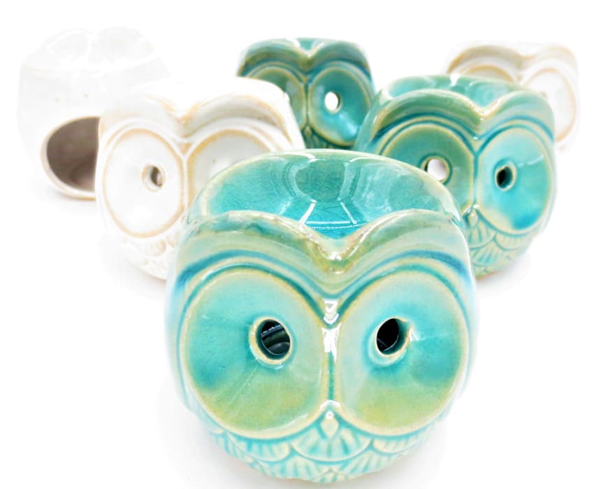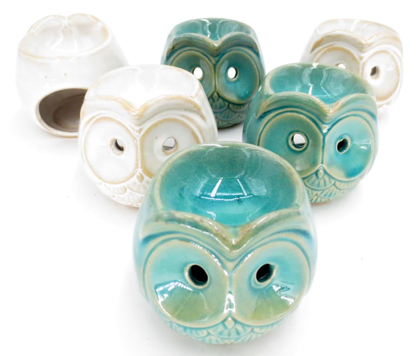Set von 6 runden Brennern Eulen 2 Farben 8cm