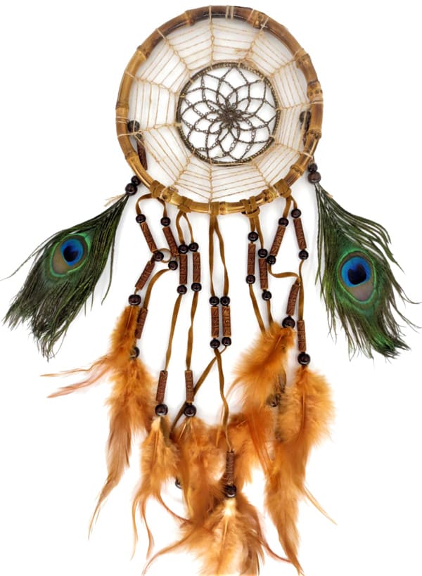 Traumfänger Bambus türkis und Pfauenfedern 17cm