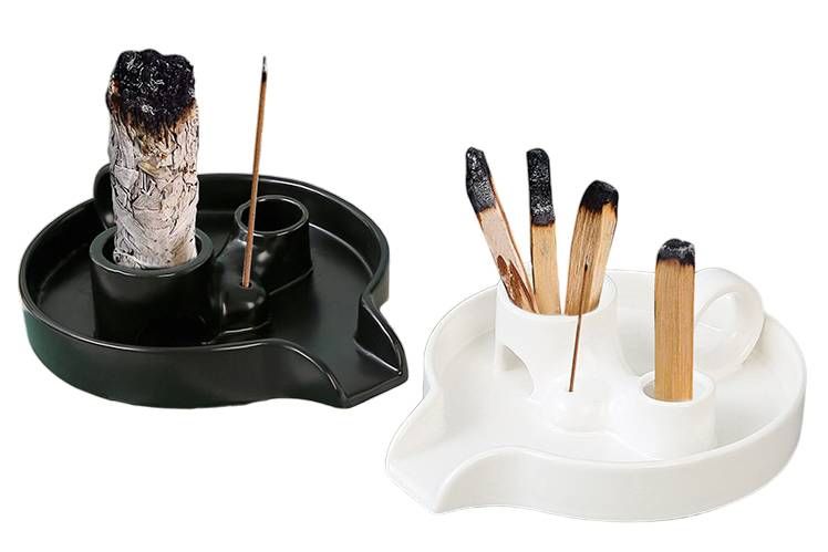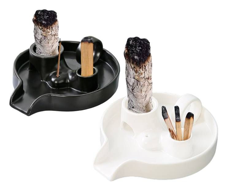 Weißer Räucherstäbchenhalter aus Keramik für Palo Santo und weißen Salbei, 18,50 cm